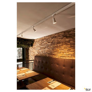 Adjustable high-voltage spot AVO with suitable adapter for the 240V 1-phase track system. The luminaire is made of aluminium and, thanks to the GU10 socket, is suitable for both halogen and LED lamps. A deco ring is included to place on the lamp for halogen lamps with 5 cm diameter.