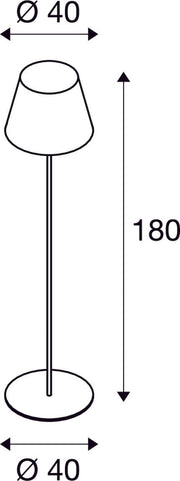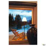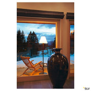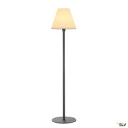 Decorative, mobile aluminium-made floor stand with a closed, high-strength lamp shade made from PC. By means of IP54 protection class, a solid base plate and connection lead with mains plug it can be used in any area. We additionally offer a suitable earth spike for installation.