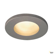 The DOLIX OUT high-voltage recessed ceiling ring is made from aluminium and has glass protection against splashing water. Thanks to its IP44 rating, it is suitable for use outdoors and in wet rooms. The integrated GU10 high-voltage fitting means the DOLIX OUT recessed ceiling ring is ready for immediate connection to the 230V mains voltage.