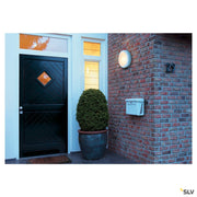 Round and aluminium-made wall and ceiling light BULAN which is rated IP44 and thereby suitable for outdoor use. The frosted and glass-made light surface is surrounded by a painted housing. Available in different colour versions, the electrical connection is made directly to 230V mains supply.