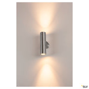 ASTINA, outdoor wall light, TCR50-SE, IP44, round, up/down, brushed aluminium, max. 44W