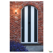The PHOTONIA wall light is made from aluminium and transparent glass, which completely encloses the lamp. Thanks to the position of the built-in sockets, the installed luminaire produces a homogeneous cone of light. With protection class IP55, it is suitable for outdoor use. The electrical connection is made directly to the 230V mains supply.