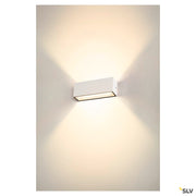 Simultaneously elegant and modern, the SLV SITRA lighting family offers delightfully atmospheric lighting in any outdoor area. The white SITRA CUBE L UP/DOWN wall light, in particular, blends in seamlessly with its architectural surroundings. This allows the light to offer an indirect lighting atmosphere that adds interest to any façade. And thanks to its robust aluminium design and an IP44 rating, the SITRA CUBE L UP/DOWN wall light is durable and features optimal protection. This integrated LED light offers 24 watts, 2800 lumen and a light colour of 3000 or 4000 kelvin that can be configured via the CCT switch. Installation to a 230V power supply is incredibly straightforward. Experience light with SLV – your reliable partner for all kinds of outdoor lights for 40 years.