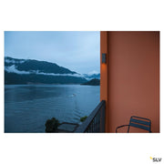 Wall light of the THEO series, made from aluminium and glass, with one light outlet. It is suitable for use outdoors thanks to its IP44 protection class. The electrical connection of the luminaire, which comes in three colours, is directly to the 230V mains supply. The THEO series contains other ceiling lights can therefore be used universally.