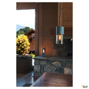 The discreet LISENNE pendant light features a smoked glass effect and comes with a base made from basalt. Thanks to the integrated E27 base, this light is suitable for LED and energy-saving bulbs. The light can be connected directly to the 230V mains power supply.