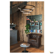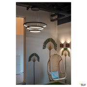 Reduced, modern and elegant, the design of the ONE light family attracts all eyes. With their expected LED lifespan of 30,000, the circular lights are also extremely sustainable. Use the ONE TRIPLE DALI Indoor LED pendant light black for a particularly pleasant, DALI dimmable light that is adjustable in height. With a CRI above 80, it provides natural colour reproduction. The low-maintenance light is equally suitable for the hotel industry and gastronomy as well as for living spaces. When will you test out the benefits of SLV's impressive indoor lights?