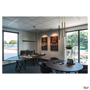 The Q-LINE ceiling light is optionally available with a white, black, or silver-grey luminaire housing. It is also available with a pure white or warm white LED, and different dimensions. Its high luminance and UGR value of less than 10 make the Q-Line luminaire suitable for workstations. Thanks to the TRIAC dimmable LED driver, the luminaire can be directly connected to the 230 Volt mains voltage supply.