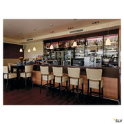 The TONGA high-voltage pendant consists of a ceramic glass, including suspension, and a ceiling plate. Its built-in E14 holder accepts general use lamps as well as corresponding EnergySaver variations. The luminaire is ready for direct connection to the 230V mains supply.