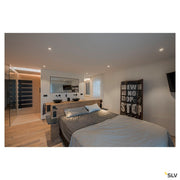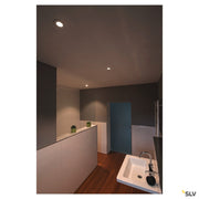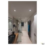 The innovative PATTA-I recessed light is suitable for ceiling thicknesses up to 20 mm. Thanks to its IP65 rating, it is suitable for use outdoors and in wet rooms. The light is available in black, white or silver grey, and in a round or square shape. It is fitted with a powerful, dim-to-warm LED, which allows the light colour to be individually adjusted. Thanks to the integrated LED driver, the light can be connected directly to the 230 V mains voltage.