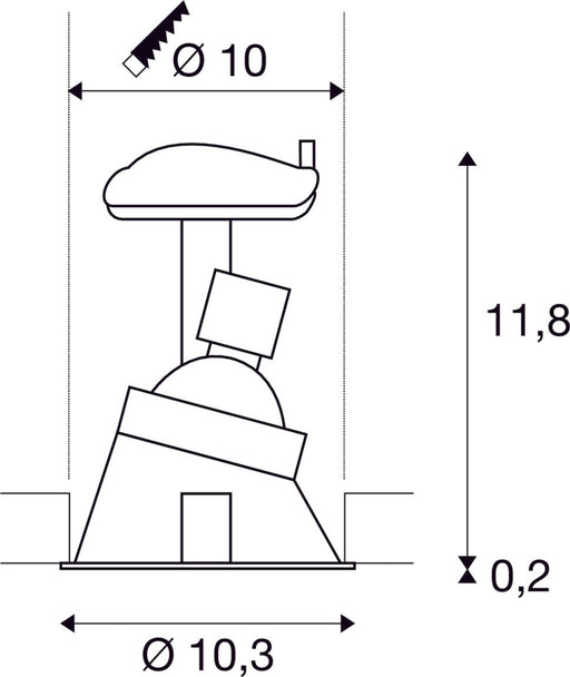 SLVTiltable high-voltage recessed fitting from the HORN series. The lamp is installed set to the rear in this luminaire which is made out of steel. Th...
