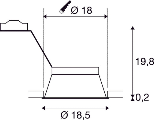 SLVThe tiltable high-voltage recessed fitting from the HORN series. The lamp is installed set to the rear in this luminaire which is made out of steel...