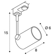 Adjustable high-voltage spot BIMA 1 with suitable adapter for the 240V 3-phase track system. The luminaire is made of aluminium and, thanks to the GU10 socket, is suitable for both halogen and LED lamps.