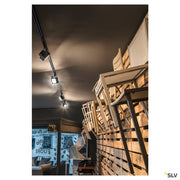 Adjustable spot EURO CUBE with suitable adapter for the 240V 3-phase track system. Designed as an optically appealing yet discreet high output LED spot for retail stores and trade fairs, this luminaire, available in a number of housing and light colours, is equipped with a Premium COB LED module with exceptional colour rendering. The longevity of the module is ensured by a heat sink integrated into the existing design.