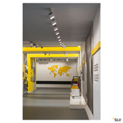 Adjustable spot EURO CUBE with suitable adapter for the 240V 3-phase track system. Designed as an optically appealing yet discreet high output LED spot for retail stores and trade fairs, this luminaire, available in a number of housing and light colours, is equipped with a Premium COB LED module with exceptional colour rendering. The longevity of the module is ensured by a heat sink integrated into the existing design.