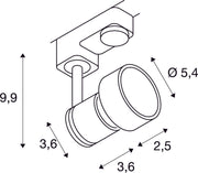 Adjustable high-voltage spot PURI with suitable adapter for the 240V 3-phase track system. The luminaire is made of aluminium and, thanks to the GU10 socket, is suitable for both halogen and LED lamps. A deco ring is included to place on the lamp for halogen lamps with 5 cm diameter.
