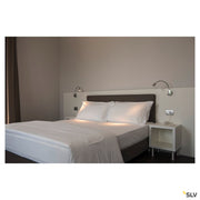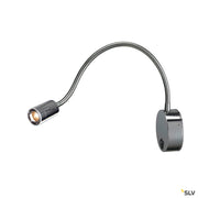Adjustable 240V display fitting for wall mounting of the DIO FLEX PLATE series, whereby the canopy and lamp head are connected via a flexible arm. Because of the switch that is fitted, the individually adjustable luminaire is suitable for many applications. The luminaire is connected directly to the 230V mains supply. An LED version is available as an alternative.