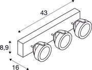 KALU, wall and ceiling light, three-headed, LED, 3000K, white/black, 60°