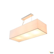 Stylishly manufactured steel and textile elements give the ACCCANTO pendant its unmistakable charm. The textile lampshade with the rectangular design, which is available in white or black, ensures that the lamp which is used has homogeneous lighting attributes. We give you the choice thanks to the installed E27 lamp socket. Regardless of whether you want to use an LED lamp, an energy-saving lamp, or a normal commercial incandescent lamp. The pendant is supplied ready to be connected to a 230V mains power supply.