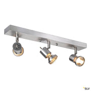 ASTO 3 wall and ceiling light, triple-headed, QPAR51, brushed aluminium, max. 225 W
