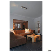 The ASTO 3 wall and ceiling light is made from aluminium and is available in white or brushed surface finish. The chosen GU10 halogen or energy-saving lamps are put directly into the designated 230V GU10 socket and can be equipped with a decorative ring supplied with the luminaire. ASTO 3 wall and ceiling light is ready for direct connection to 230V mains supply.