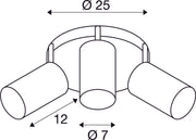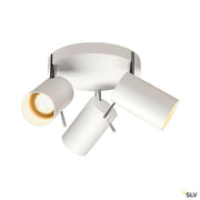 ASTO TUBE 3 wall and ceiling light, triple-headed, QPAR51, round canopy, white, max. 225 W