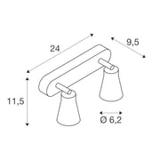 The wall and ceiling lights in the AVO series, with one to four adjustable lamp heads fitted to the canopy. The luminaire is made of aluminium and, thanks to the GU10 socket, is suitable for both halogen and LED lamps. The electrical connection of the luminaire, which comes in various colours, is made directly to the 230V mains supply.