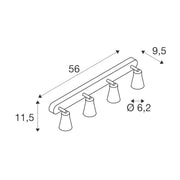 The wall and ceiling lights in the AVO series, with one to four adjustable lamp heads fitted to the canopy. The luminaire is made of aluminium and, thanks to the GU10 socket, is suitable for both halogen and LED lamps. The electrical connection of the luminaire, which comes in various colours, is made directly to the 230V mains supply.