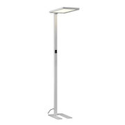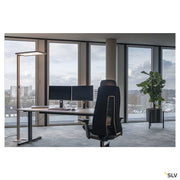 The silver WORKLIGHT FL can handle any requirements for modern workplace lighting. Thanks to the integrated LED light, 7600 lumen, UGR ≤ 19 and 4000 Kelvin, this free-standing lamp emits a neutral white, glare-free light that boosts concentration. Other features include a motion sensor, daylight control and full dimming control. Thanks to the integrated driver and supply cable, including plug, the WORKLIGHT FL can be connected directly. With an LED lifespan of 50,000 hours, it is also exceptionally durable.